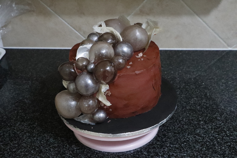 3 Layer Chocolate cake with Buttercream Icing and Gelatin bubble detail