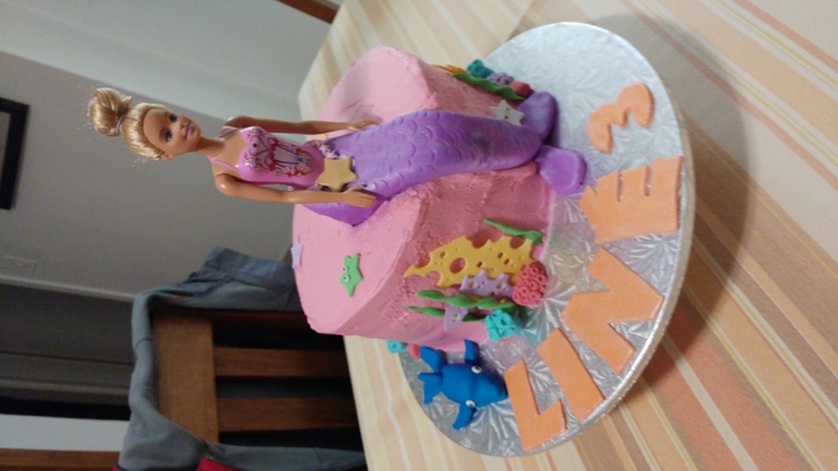 Mermaid theme - 2 Layer Vanilla cake with Buttercream Icing and Fondant detail