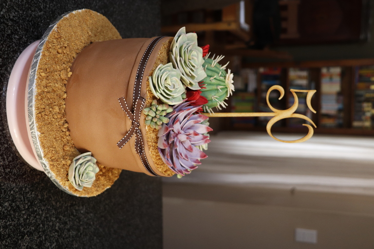 Succulant theme - 3 Layer Carrot Cake with Cream Cheese icing covered in Fondant with Fondant flower detail