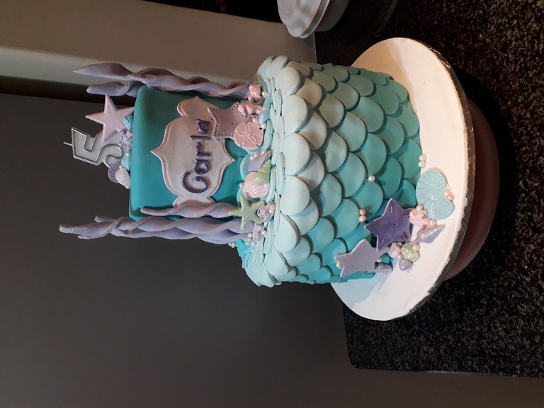 Mermaid theme - 2 Layer Vanilla cake with Buttercream Icing covered in Fondant with Fondant detail
