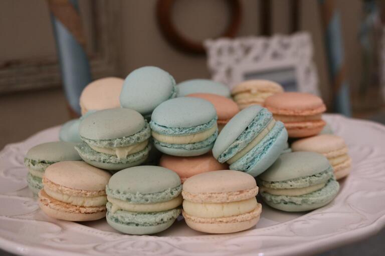 French Vanilla Macarons in pastel colours with White Chocolate Ganache filling 2